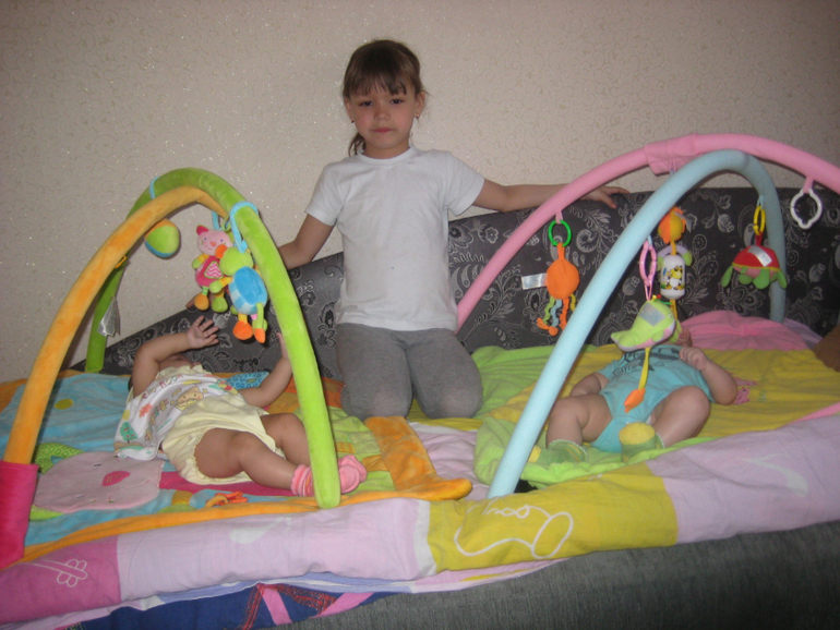 Вообще супер-пупер семья. У нас ведь у старших тоже 5 лет разница. Вполне нормальная. Не было такого, чтобы ревность. Ну да, ссорились потом, даже подраться могли, когда постарше были. Но как то всем внимание было всегда. Потом между вторым и третьей 7 лет разница. Тоже никто обделен не был. Если и не хватало внимания, то уж всем вместе. Я работала всегда практически, без отпусков по уходу. Тут получается тоже 5 лет разница между четвертой и двойней. Но вот так грустно ребеночку. Тяжело, когда ты четвертая и самая младшая и все для тебя и оп-па, откуда ни возьмись еще два претендента на маму.
