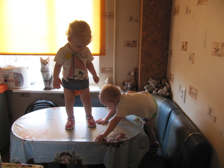 Это какой-то ураган, тайфун, а не дети! Они везде и всюду, причем постоянно. Покорили горизонтальную плоскость пола, скучно стало. И понеслось… Диваны, стулья, табуреты, столы, стеллажи и полки… Лишь бы было куда поставить ногу, было бы местечко, где можно уцепиться ручками.