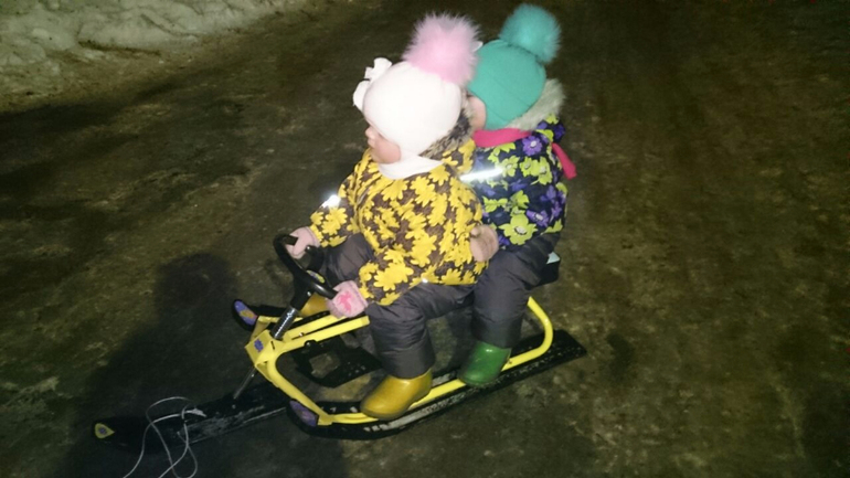 А у нас снегокат не пошел вообще никак. Воевали из-за руля. Хотела дочке оставить, но ей по высоте оказался маленький. И мы с ним расстались.