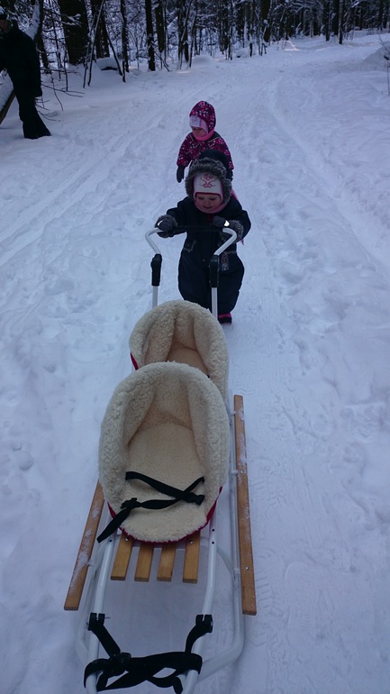 Покупки для двойни. Советы,вопросы обсужденияОткатали наши любимые санки 2 зимы,за это время не было ни одной поломки,если снег хорошо накатан рулить ручкой очень удобно,но решила с ними расстаться,не очень их удобно таскать из-за длины,что-то подустала,посмотрела в нашем сообществе,что берут для 3-х леток и решила взять снегокат,нисколько не пожалела - легче и по чищенной дороге даже легче везти,мои ленятся пешком ходить в сад,да и мне жалко - с утра такие сонные.Вдвоем в объемных Керри помещаются,даже немного свободного места остается.Ну и фотки)