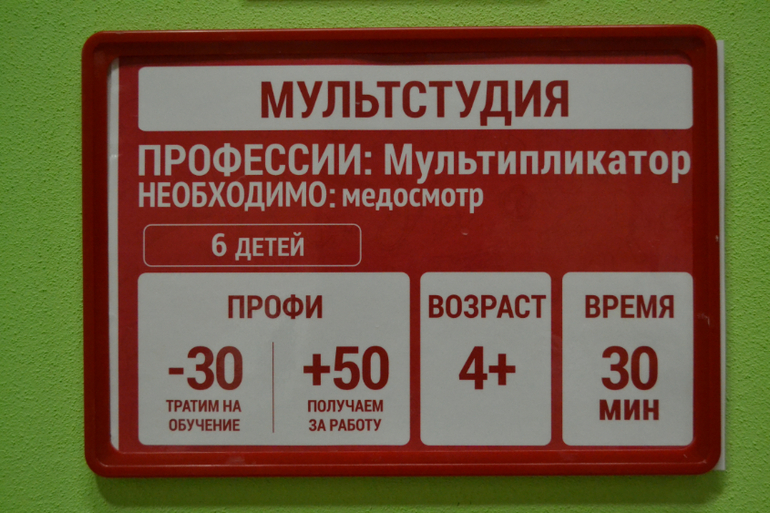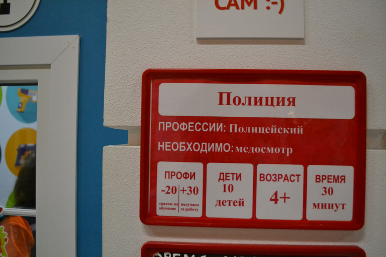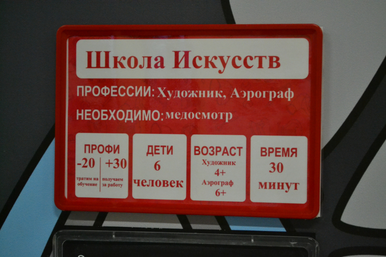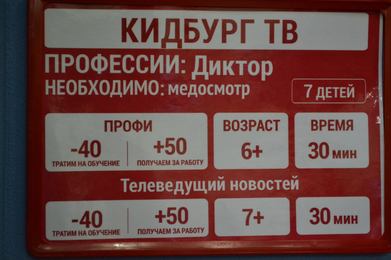 Дальше можно идти осваивать профессии. Выбор огромен. Только почему-то на сайте Кибурга очень плохо написано про то, какие профессии на какой возраст рассчитаны. При этом на входе выдается буклет, где все подробно изложено. Почему нельзя разместить этот буклет на сайте мне не понятно.
