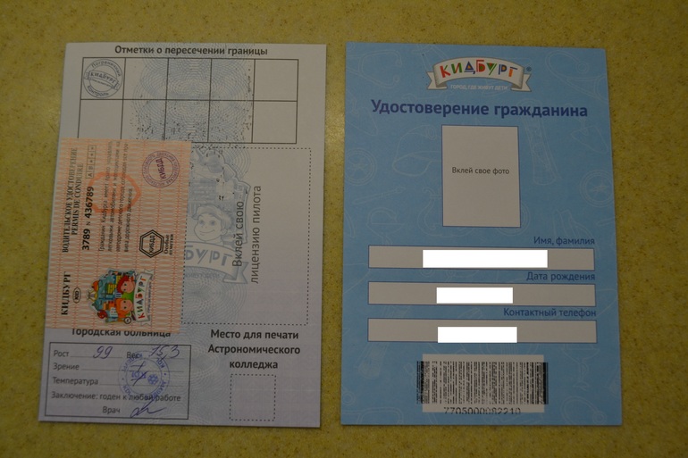 Сразу после входа в Кидбург дети подходят к стойке, где им заводят удостоверение личности, в котором указывается Имя и Фамилия ребенка, дата его рождения, а так же контактный телефон родителя. Обязательно проверьте - правильно ли заполнено поле с телефоном. При мне работники звонили по телефону маме детей, а попадали к чужой тете. Мама, оставив своих детей, пошла со спокойной душой ходить по магазинам, а дети остались без обратной связи!