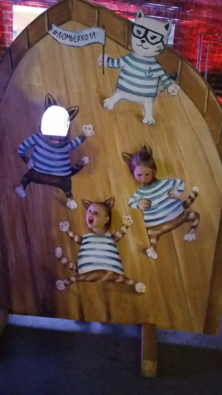 А в плохую погоду ходили в Люмьер Холл. Это бывший газгольдер, круглое здание из красного кирпича с высоким потолком. Там под классическую музыку на множестве больших экранов пускают картины разных художников, сопровождая фактами из жизни и творчества. Мы застали кусок Ван Гога и начало Айвазовского. Некоторые картины анимированы, выглядит довольно необычно. На полу множество пуфиков, так что можно наслаждаться искусством лежа. Кот как-то заробел и все время просидел на руках, а Варя быстро адаптировалась и давай, как босс, пуфики переставлять.