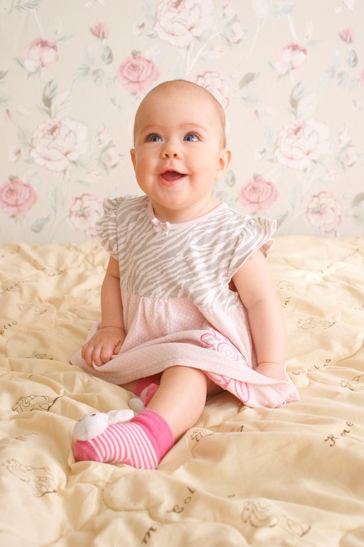Василиса уже стоит у опоры и уверено сидит. Сразу как просыпается встает на колени. У нее уже 2 зуба)
