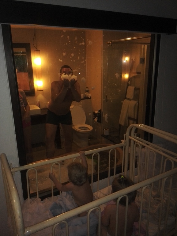 За несколько дней мы поняли, как сделать режим нам -взрослым, чтоб отдых не превратился в кашу или рутину. Первый сон был на пляже, после того как деток купали в море, они немного плескались в бассейне( купли надувной там)с морской водой. И потом в колясках они спали. В это время бабушка сидела с ними, а мы с мужем и дочкой плавали в море вместе, пару раз снорклили у камней на кате или ловили сумасшедшие волны(когда волны были очень большие, детей не купали в море, взрослым то страшно ,а с малышней категорически нет!). Касаемо того, что бабушка была за няньку- так вот совсем НЕТ. Это единственное время, когда мы немного передыхали от детей- время первого сна. И один раз мы ее попросили посидеть у нас в номере, уложив детей спать. Мы с мужем вдвоем пошли погулять по патонгу, и сходили на биг ай шоу (для взрослых). На этом бабушкина помощь закончена. Спасибо ей и на этом.