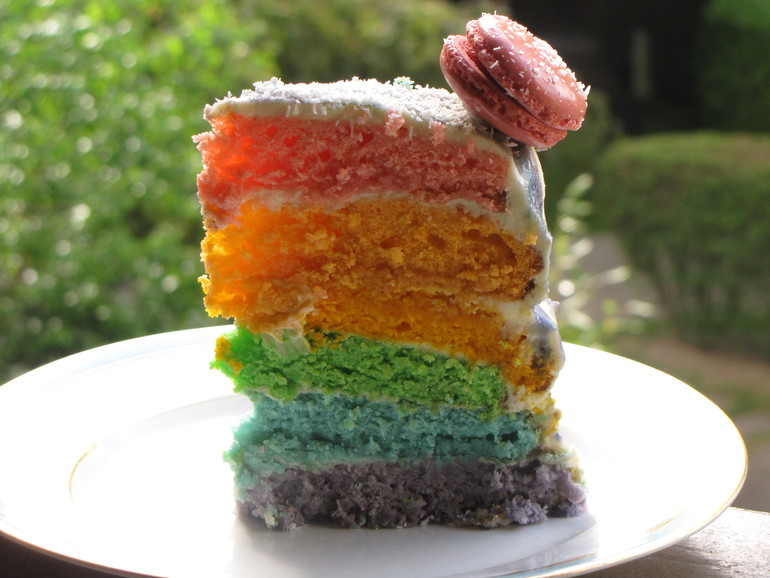 На ДР заказали мне торт Радугу ,пришлось делать:)