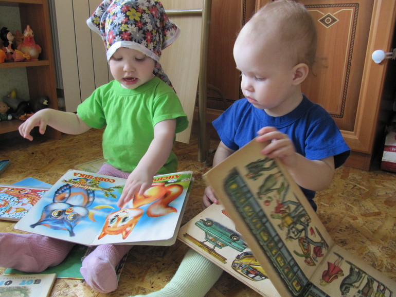 Всё так же любят наши доченьки книги. Смотрят их сами, рассматривают со мной, с сестрой. В основном пока смотрим и называем, кто изображён на картинке, как разговаривает, что делает. Читать сами сказки и стихи пока не очень удаётся - перелистывают страницу, и начинают рассказывать, что видят на картинке. Но иногда всё же начинают слушать и соотносить текст с картинкой.