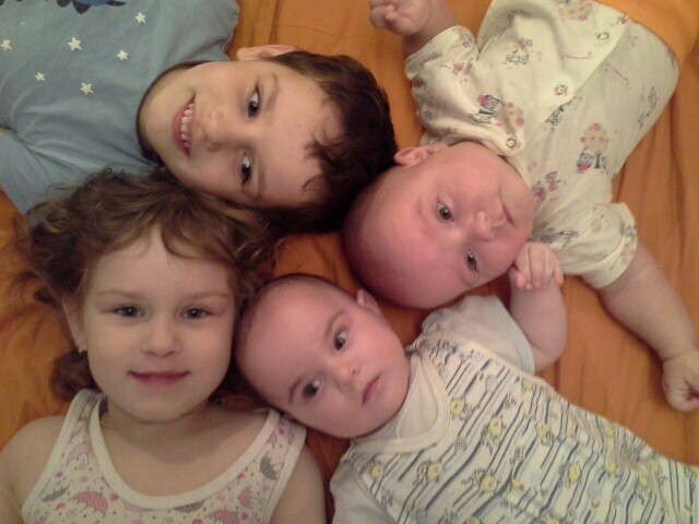 А родители рядом на коврике спят?))) Все хотела спросить, вам же старшие помогают, возятся с младшими?