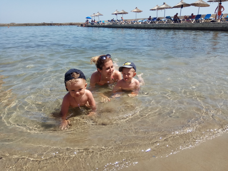 В отпуск ездили на Крит, на две недели. Первые дней пять, конечно, было тяжеловато. Привыкала к новому отдыху с детьми я, а дети привыкали к новому месту и новым людям. Потом было здорово, уезжать не хотелось.