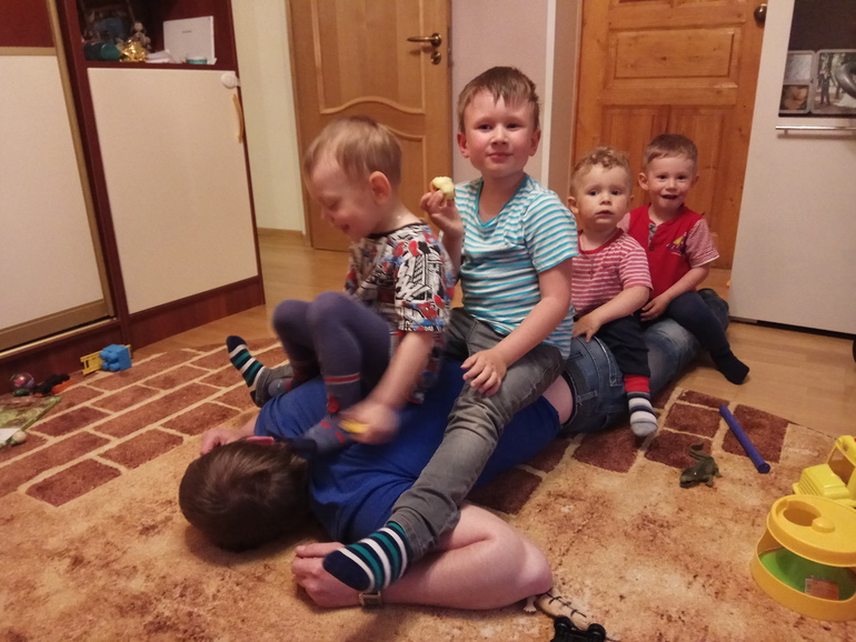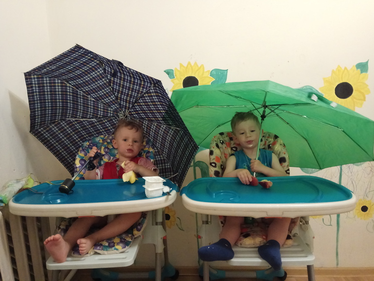 Болтаем во всю, поём песни, рассказываем стихи, всех слов я не перечислю. Обожаем танцевать, Витя при людях стесняется, Паша более открытый. Витя у нас модник, пока оденешь его куда-то, можно чокнуться! Это хочу одевать, это не буду. Хуже всего, если прицепиться к кроссовкам в жару или к сандалям в холод 🙈 Стали выдумывать что-то, так смешно рассказывают. То какая-то красная соска там лежит за углом, то по шоссе едит длинный паровоз. Тычут пальцами и утверждают, что видели поезд! Очень смешные, непоседливые, классные. Хотят всё делать сами, а потом говорят: "Паша малыш, Паша хочет на ручки!" Или то же самое Витя. "На ручки" у нас какая-то больная тема, не пойму, с чем связано, но стали часто проситься. Хуже всего, когда оба. Что ещё умеем? До 10 считаем, уже умеем и дальше, но там путаница, перескакивают с цифры на цифру, буквы знаем а, б, м, п, в общем, тоже не все. Цветов много знаем, все основные, любимый у Паши оранжевый, Витя пока не определился. С горшком пока не сильно дружим, если сажаю, сидят, но сами не просятся. Или говорят, когда уже поздно. С покаками и того хуже, любят спрятаться и там делать дела. Ездили в отпуск, так там какали в ресторане под столом! Один раз приспичило Паше, когда были на пляже, так он всё пытался под лежак залезть, очень расстроился, что не вышло.
