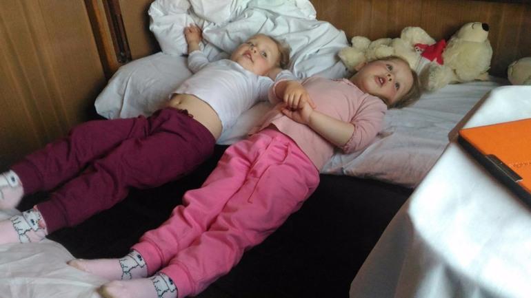 С выбором профессии уже определились. Варя будет делать уколы девочкам и мальчикам, а Катя просто людям. Активно практикуются уже сейчас. Делают шприц из указательного пальца, и всех им тыкают. Сначала тренировались друг на друге, но теперь достаётся и окружающим. И даже незнакомым