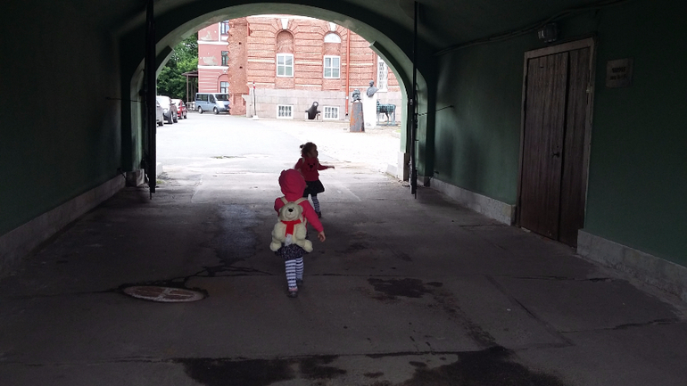 Для меня любимый вид прогулок -- пеший. Дети рассекают по набережной на самокатах, я стараюсь не отставать, превращаясь в олимпийского легкоатлета, иногда кормим уток, доходим до метро (а это 4 остановки) и обратно по другой стороне. Получается около 3.5 километров. Затем ныряем во дворы и развлекаемся на площадках.
