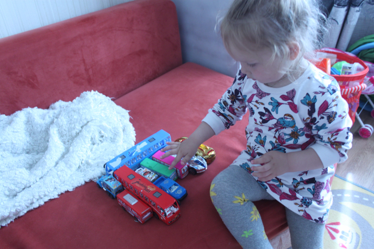 --Поеду в магазин, куплю там помидоры, салат, лук, мороженное, колбасу, зефир. Всё, поехала! А ты, мама, стой здесь, я сейчас вернусь. (поехала в одну сторону) А! Нет! Налево надо (повернула в другую).