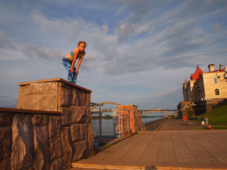 Настя и Федя стоят рядом с организаторами - крайние справа двойняшки. Потом они попросили переодеться и гуляли, бегали по набережной :)