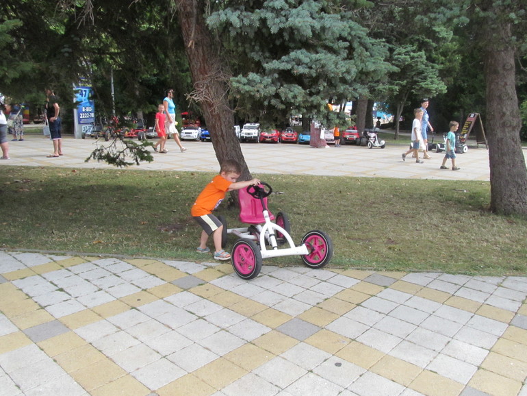 конечно, по жаре не очень люблю в город с детьми ходить. На море да обратно, ну и в садик. Хорошо в садик сейчас водим через два дома от нас.
