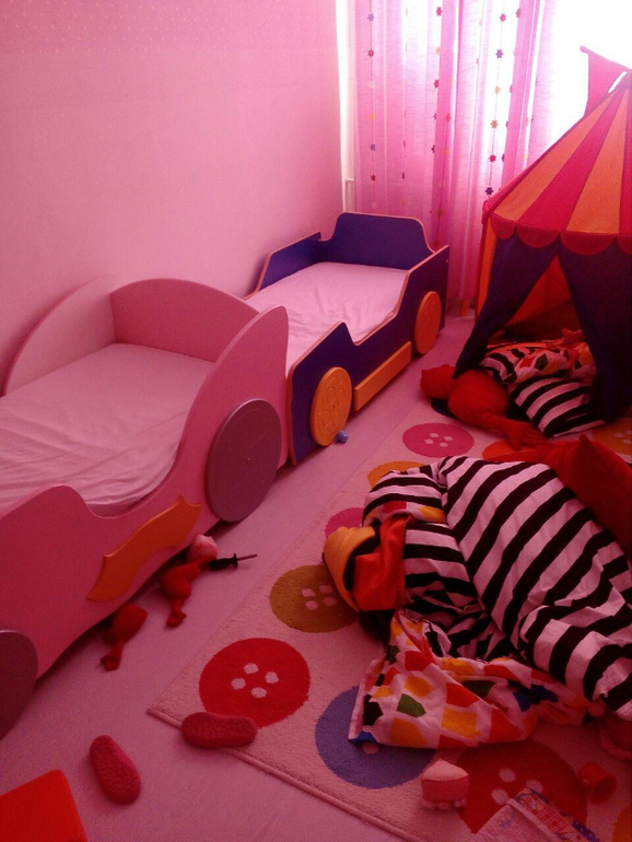 Думаю, зря вообще кровати новые купила детям, все равно один спит в палатке, второй на ковре)))
