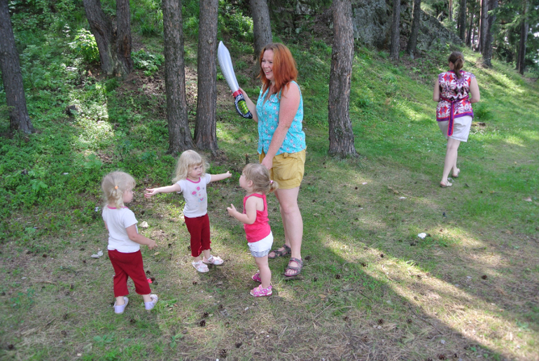 Отгоняем комаров саблей)) О чем дети беседуют, для нас загадка 0))