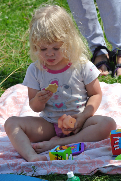 Сегодня пришли, мелкие скинули с себя кроссовки, помогла им сандалии надеть, пока разговаривала с воспитательницей, на мне висли чужие ревущие дети с воплями "МАМААААА", а мои удрапали в группу играть...вот так. Ника надула в штаны, ее там переодели, и забрали мы с прогулки довольных детей, они махали руками и кричали: "Тёти, пока!"