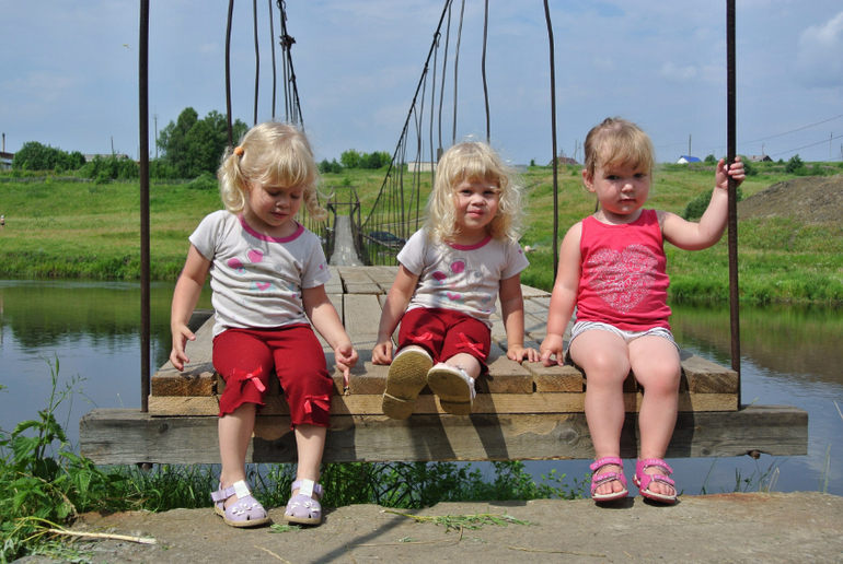 Дети на подвесном мосту ( страховали 4 взрослых)))