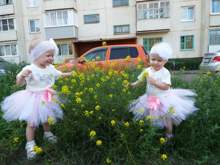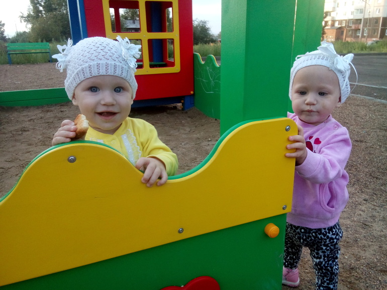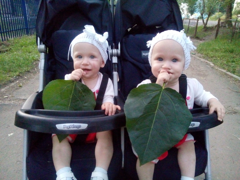 ) . На улицу только тяжеловато ходить одной с ними. Выпустишь с коляски и смотри в оба: одна побежала туда, другая уже в рот какую-то дрянь тянет. Скорее бы этот период "всегособирания в рот" прошел! Атак пусть бегают, далеко все равно не убегут :) Недавно ходили в больницу, пока ждали очереди они такой кипишь в коридоре устроили. Бегают друг за другом, хохочут, пищат на всю больницу. Вот как таких успокоишь? Бабульки умиляются:как хорошо им вдвоём
