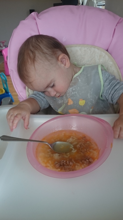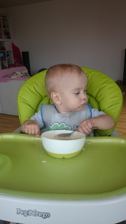 Какая прелесть)))) уморилась куколка. Молодцы! Сами кушаете, а мы до сих пор кормим и не просто так, а ещё и похрюкаем и погавкаем, чтобы ложку в ротик запихнуть. И тоже, кстати, с общего стола еду лучше ест, чем свою, хотя я уже давно тоже не блендерю