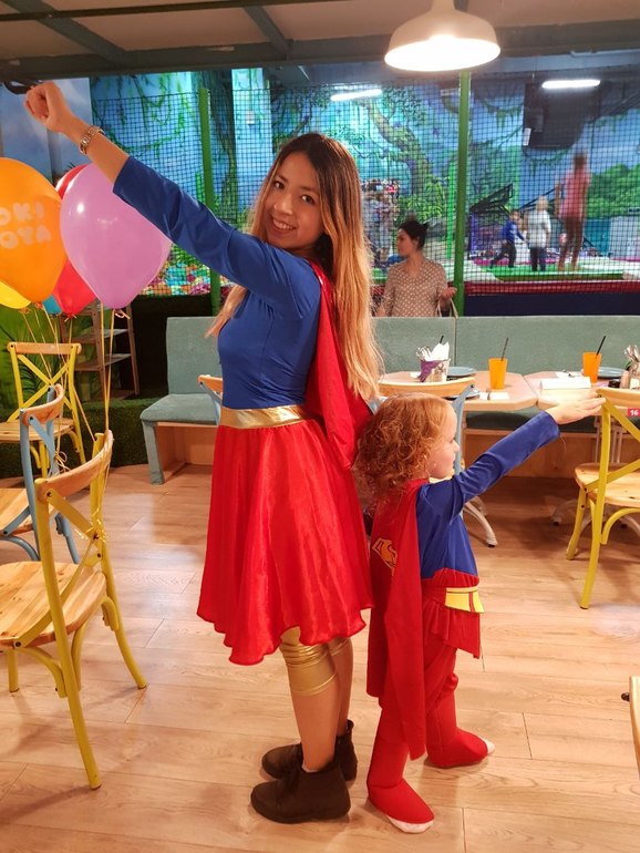 это Маша в костюме супер девочки с аниматором,получилось здорово.