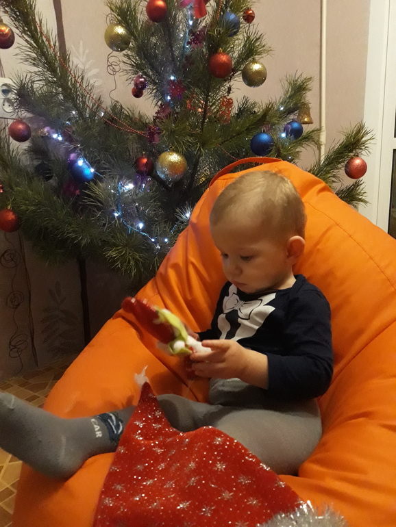 Эт Макарушка.. серьезный только проснулся. занят разбиранием Елки.