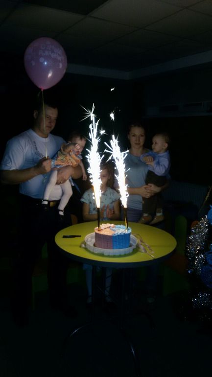 Двойняшки до 1 года2января нам исполнился годик!! !мы решили отметить его в игровой,игровая небольшая и откупается полностью мы были там одни,заказывали шоу мыльные пузыри.все прошло хорошо ,в начале декабря ходили на фотосессию ,дети стойчески выдержали,и не много фото и моя любимая троица и мы)) Чего мы достигли у Саши 6 зубов,у Веры только лезут 3 и 4,бегаем,везде лезем,отрываем обои))),катаем машинки,показываем носик ,глазик,выучили все игрушки кошек,ладушки,ставим кубики,пирамидка пока не идет могут одно колечко одеть и все.Еще мы убрали ночное кормление ура !!убирали целый месяц,теперь у нас такой рацион 8:30 каша,в 13:00 суп, 17:00 творожок печенька и пюре,19:30 каша и 23:30 йогуртСпим пока еще 2 раза,днём качаем вот надо отучатсяЕще надо отучаться от бутылок и пить с кружки и пробовать горшок,старшая дочь в год сама ела и пила с кружки,здесь как то упустила этот момент