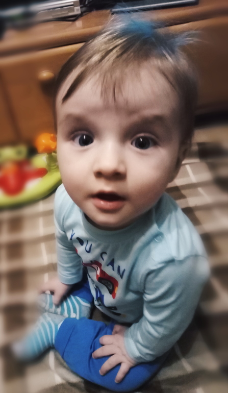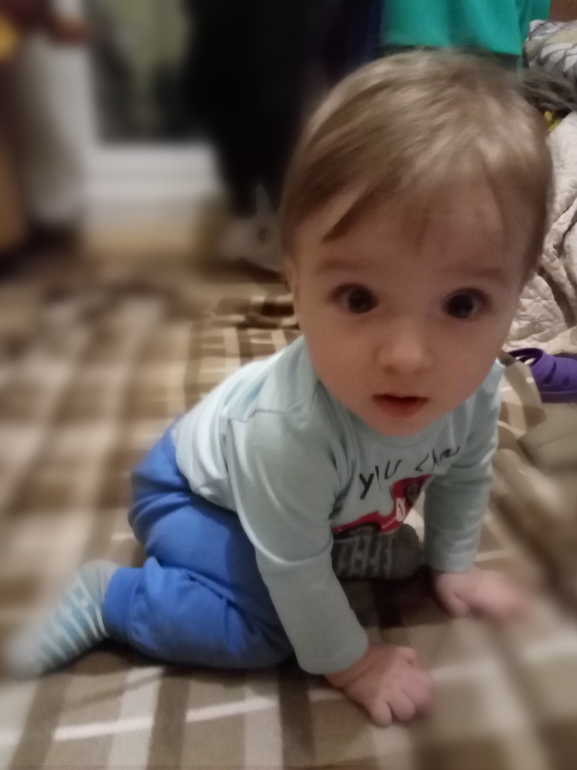 Валера... Вот это радость)) Напомню, что когда мы были в Питере, отчим мой усадил его на попу, и выяснилось, что он идеально сидит. Спина ровная, равновесие держит. За месяц он в этом поднаторел, и вообще стал во все стороны на попе крутиться, лежать не хочет. Наконец-то встал на четвереньки! Вот только встал он на них совсем не для того, чтобы ползти, а чтобы сесть. Много раз пытался, мы немного помогали, а сегодня сел сам с четверенек) Завтра поедем к платному неврологу - будет, что рассказать) Хлопает в ладоши, теребит губу, издавая звуки) не знаю, как это описать)) Мне за последнюю неделю будто подменили ребёнка - он даже смотрит на все с таким удивлением, будто первый раз видит)