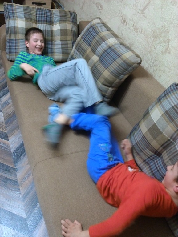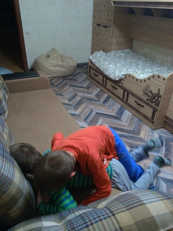 Почти каждый вечер один начинает задирать другого, совсем чуть-чуть. А заканчивается тем, что мне приходится растаскивать вспотевших, красных и пыхтящих мальчишек по разным углам. Клубком катаются по всей комнате! С октября выкинула пять пар домашних штанов - колени в хлам) Так, что мамочки, и в семь лет бывает ох, как весело))))