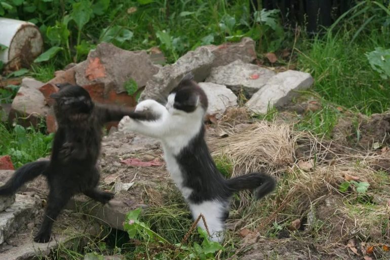 Вы видели, как борются подросшие котята? Шерсть дыбом, глаза круглые, движения плавные и прыжки во все стороны, где бы не находился брат....