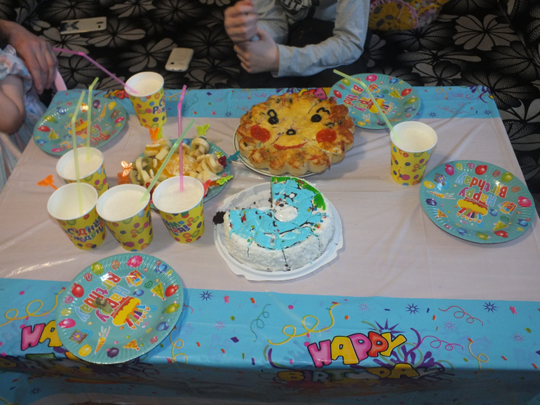 Стали общаться между собой, играть. Так интересно, спать их укладываю, Лера кричит из своей кроватки - ЯЯ! (это она его так называет) он лежит и откликается, што? В общем, она за него горой, очень любит. В нем пока такой любви к сестре не проявляется. В этом плане мальчики видимо отстают. Ниже фотки с дня рождения! Делала стену им неделю, хотелось чего то красивого. За столом с ними пока трудно, так как Ярославу нужно все пощупать, потрогать, составить по своему. Но мы справились)
