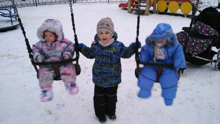 У меня двойняшки старшии и есть ещё младший разница 2,8 у них. Я гуляю всегда одна (помощи нет). И поэтому мои двойняшки сидели на прогулки, чаще всего в коляски(практически до 2,5 лет). Детские площадки обходили стороной иначе пытались вылезти из коляски. Площадки у нас достаточно опасные.
