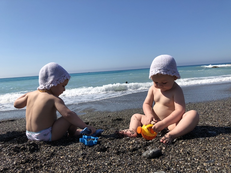 ПутешествияВсем привет! Вернулись мы недавно из отпуска с двойней 1,8 г . Расскажу вам как все прошло. К слову, прошлым летом мы тоже летали с ними в Италию, когда им было 10 мес. В этом году маршрут тот же, но перелёт прошёл легче, повзрослели наши малышарики )) вылет был в 8:00 утра, но до аэропорта нужно было ехать на машине 1ч40мин, поэтому выехали мы ночью , около 03:00. В дороге до аэропорта одна спала, вторая пол дороги в окошко смотрела , но потом тоже сдалась. В аэропорту в зале ожидания резвились в детском уголке ( сухой бассейн, пластиковая горка), еле вытащили их от туда, уходили на посадку с криками и психами. Сели в самолёт , на взлёте попили воды и все... сели батарейки, обе вырубились и спали до самой посадки. В Москве , в Шереметьево пересадка 5 часов, покушали в ресторане ( брала им куриный суп лапшу и нагитсы с картошкой фри). Побегали по аэропорту, потом поспали в колясках, потом опять побегали, перекусили соком с печеньем и сново в полет . Второй полет спали мало, ходили по самолету больше, то с мамой, то с папой. В общем целом хорошо перенесли оба полёта, по сравнению с прошлым годом , когда они обе хотели спать и всем была нужна Мама в этот момент, папу и его заманухи они видеть и слышать не хотели. А в этом году , Папа тоже в их глазах ни че так оказался, можно и на нем вздремнуть ))) вообщем прилетели мы в Ниццу ( Франция), а с неё тоже надо на машине пилить пол часа до севера Италии . Вот Европа , все близко , красота. Но тут наши девочки уже подустали и немного покопризничали, но не критично. Отпуск прошёл гораздо легче по сравнению с прошлым годом ( как по мне, муж говорит , что отдыха сильно не почувствовал). В прошлом году наши 10 мес дамы ещё не ходили, и мне было сложнее их постоянно как котят переносить на руках, а сейчас, они более самостоятельные и менее капризные соответственно, так как могут дойти куда захочется и взять то что глазу мило стало, вообщем Мама немного на второй план ушла и ей от этого легче стало! Обратный полет тоже хорошо перенесли , спали оба перелёта . И главное, при смене климата , ваши дети быстрее растут и развиваются , так что не бойтейсь с ними путешествовать . При разумной подготовке и адекватному поведению на отдыхе ваши дети получат только Здоровье и массу приятных эмоций. Это нужно было видеть, как девчата визжали и хохотали при виде приближающейся волны на море , сначала осторожничали заходить в воду, под конец отпуска мы с мужем были уже на чеку, что бы ни кто из них не уплыл с берега. Ну и позакалять успели их в душе на пляже, где вода очень холодная , бррр, там тоже, наши сначала сильно возмущались , под конец отпуска не выгонишь их с этого душа, научились сами его включать и мыться . Думала за месяц на итальянском что то скажут))) не сказали, но понимать к концу отпуска простые глаголы стали. По итогам отпуска: Мои дамы сильно вытянулись, загорели , стали больше слов говорить, меньше боятся незнакомых людей, и даже между собой стали лучше взаимодействовать... одна наконец то отказалась от соски , просто сгрызла её и вот уже второй день не вспоминает про неё, вторая надеюсь на подходе избавиться от этой вредной привычки ))) и по традиции наши фото