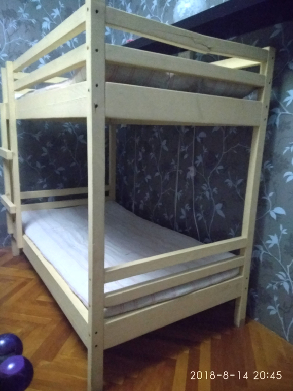 Отдам двухярусную кроватку с матрасами, размер спального места 74 х 134 см