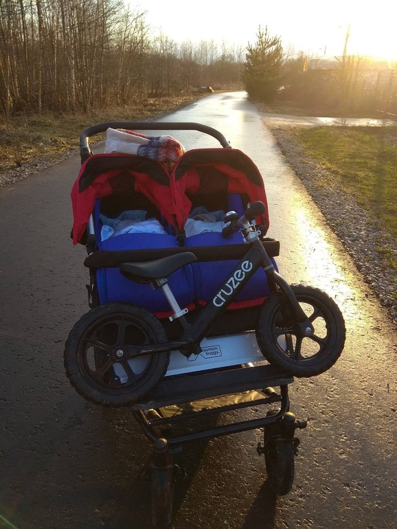 Ещё для меня незаменимая вещь это прогулка одинарная (в моем случае это снап от старшего сына, обожаю его,он супер лёгкий) и эргорюкзак, сын в прогулке разложенной (там 180 градусов) дочь в эргорюкзаке, старший за руку или на беговеле, это для меня очень мобильно, т.к. маунтин с трудом впихиваю и достаю из багажника, а так всех быстро распихал и мчишь по делами с маленькой коляской и свободными руками,но правда пальцем тыкают часто )))))