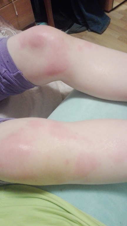 Ребенок, 7 лет. Орви вяло текущее дней 10. Шла на поправку, вдруг темп 37.7, насморк. А самое главное красные пятна по всему телу, но особенно сильно на всех суставах.