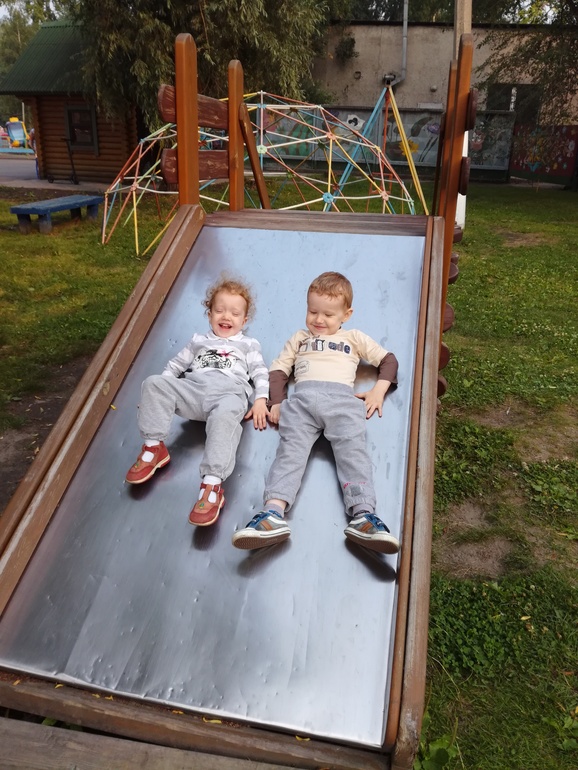 Двойняшки от 1 года до 3-хДавно не писала Дети очень изменились стали больше говорить ,не всегда конечно понятно,стали складывать простые предложения.Вера в этом более преуспевает чём Саша.Стали задавать вопросы.В сентябре в садик,не знаю как пойдем ((.Ходим на горшок ,но на ночь в памперсах ещё много дудонят ,мне пока так спокойнее,на улице тоже просятся.К книгам пока особой любви не возникло,только просто смотрим ,ну и короткие стишки,любят клеять наклейки которые в книжках,рисуют каляки,в мозайку просто втыкают беспорядочно,пазлы из двух частей любят.Играют в гости так смешно.По прежнему дерутся за игрушки,у Веры с едой не всегда ладно особенно в обед.Сейчас Вера примерно 11кг и 86 см ,Саша 14 кг и 95 см .И фото