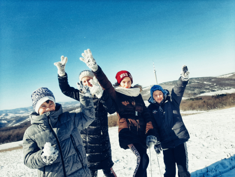 Но тут, о Боги, выпал снег. И прям МНОГО снега, для нашего района это неслыханная радость. Весь Новороссийск примчался к нам в горы покататься на санках. Мы только болезни, но детвора тааааак смотрела на гуляющих и катающихся, что мы все решили вырваться на местные "горно-лыжные курорты" ![]()