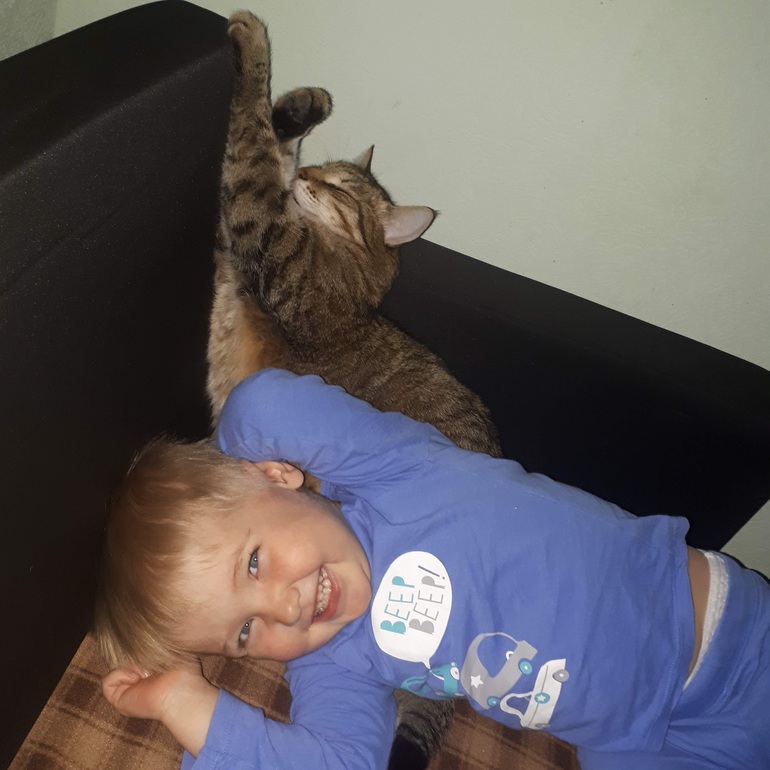 Младший: 2 зуба нижних, лезут верхние. ползает на четвереньках, сегодня из этой позы сам сел !! Подтягивается руками и пытается вставать в кроватке. Неравнодушен к домашним животным. Животные в шоке. Разломал свою кроватку. Сказал первое слово 😅 - «АМ!» почему отношу его к слову, потому что говорит его в определённой ситуации с конкретными намерениями - во время еды открывая рот и требуя следующей порции. Мы в умилении, память и все облака в телефонах уже забиты, но мы упорно записываем 125 ролик как Мика играет со шваброй, кушает творог, мучает кота. Давид конечно более интеллектуально развит.. он на мелочи не распыляется, любит все разобрать пальчиками, один раз словили его за игрой с волоском (!) 🤦🏻♀️😅 Из ручки в ручку двумя пальчиками сосредоточенно перекладывал мой длинный чёрный волос. К игрушкам они как то более равнодушны, а вот вилка со шнуром это высший пилотаж. Обожает плескаться в ванной.