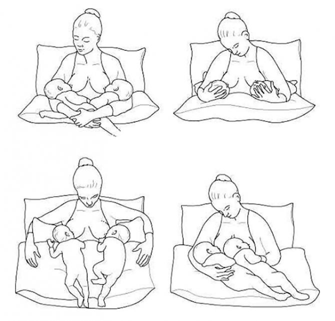 То есть один в позе колыбель, второй из под мышки. Пока маленькие были, укладывала голову второго на свёрнутую пелёнку, чтоб помягче ему было, как раз месяцев с 5-6 уже просто ложился головой на ноги сестре) ну и кормлю на диване откинувшись, так что никаких подушек и тд не надо лишних