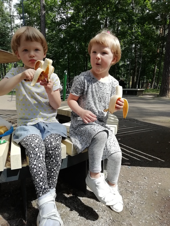 Самостоятельные, взрослые, умелые. Рассудительные. Вещают про Иисуса и Богородицу на детской площадке. Соседские дети шарахаются. Что они едят - даже вот стараюсь не думать, у бабушки свои представления о прекрасном. Ну сыты, здоровы - и прекрасно. Люблю, скучаю...