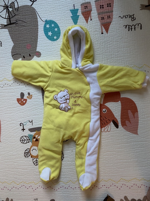 Комбинезоны 2 шт, трансформер, внутри овчина отстегивается, получается очень-зима-весна. есть пинетки. Размер 74. По факту можно с рождения.