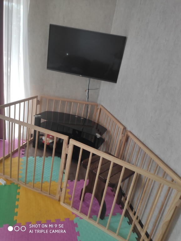 Кроме сна мы в этой комнате все время, так как с этой комнаты выход на кухню. Мне так удобно, я на кухне, а они в комнате. Надоело конечно перескакивать все время через перегородку, но что остается делать, когда детки заходят на кухню, то переворачивают все верх дном.