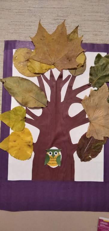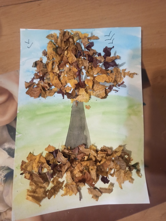3. Аппликация про осенний лес. Дала основу и ушла ужинать.