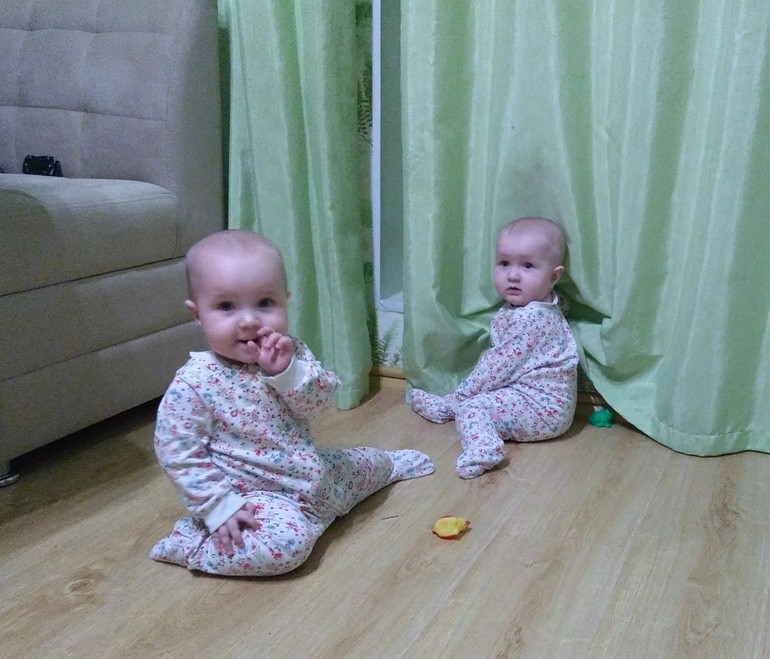 Полина очень активная, она постоянно в движении, ей всё надо, она ползет за мной везде и ноет при этом, мол, ты что это меня бросила?)) Алина более спокойная, может и без меня посидеть. Из-за того, что Аля пока больше лежит на пузе, Полина на неё периодически пытается залезть. Это, конечно, очень забавно выглядит со стороны, но Алина, естественно, сразу обижается и ревёт) Полина обожает смотреть на себя в зеркало, так непосредственно радуется каждый раз) Обе любят изображения малышей, даже небольшого размера на коробочках, так мило улыбаются сразу и болтать начинают)