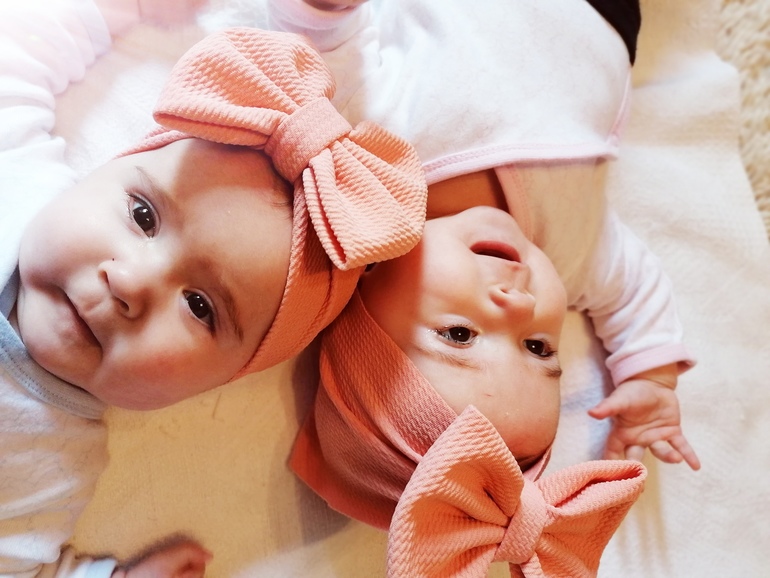 Вы спросите, как я понимаю кто где? Я с самого начала одной надеваю белые носки, а другой розовые. Одной даю розовую соску, а другой персиковую 😹😹 Ну конечно если присмотреться, то можно найти различия, но я их не вижу, так как нахожусь постоянно рядом с ними, смотрю на них вблизи. Возможно, если бы я видела их на руках у других людей, смотрела бы со стороны, то смогла бы начать различать. А так получается: у обеих два глаза, нос, рот, уши, тёмные волосы - поэтому спасибо большое разноцветным носкам и соскам 😹😹😹
