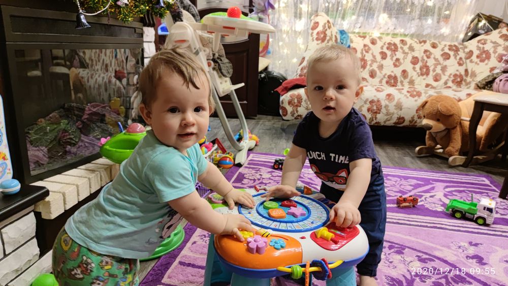Мироша: 2 зуба (1 верх, 1 низ), ходит вдоль всего, пытается ходить, но пока тщетно, только за ручку, болтает без умолку, сегодня освоил диван-залез и слез ножками вперед, хорошо и долго стоит без опоры.Имеет отменный аппетит, добрый и улыбчивый мальчик. Мое солнышко. Почему то боится темноты, поэтому иногда проснувшись ночью орет сильно. Постоянно пытается залезть на лестницу, на все игрушки.