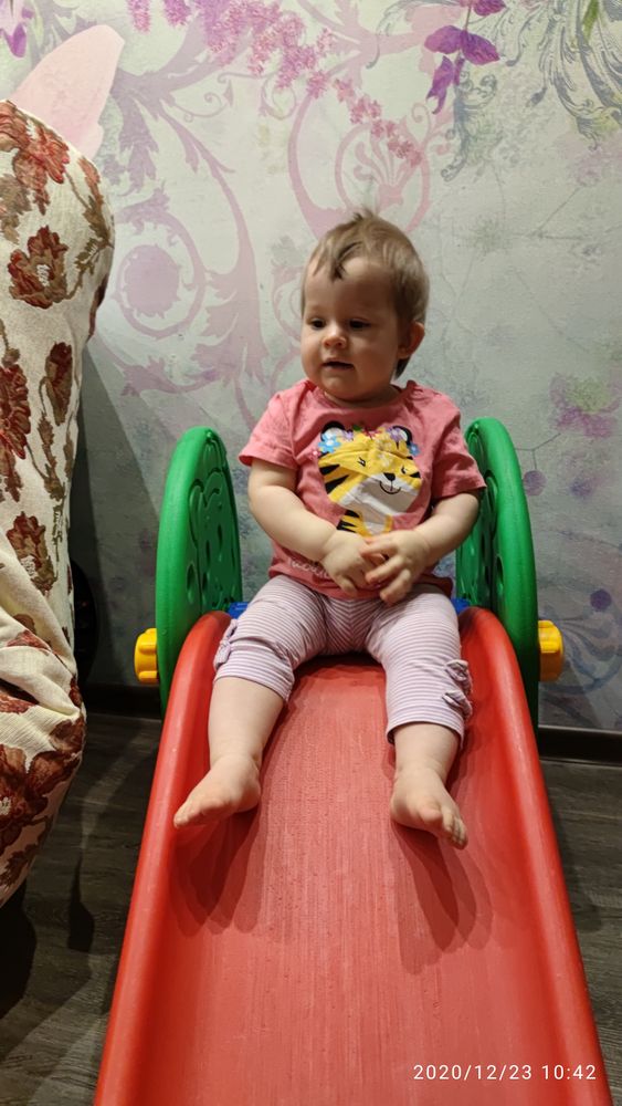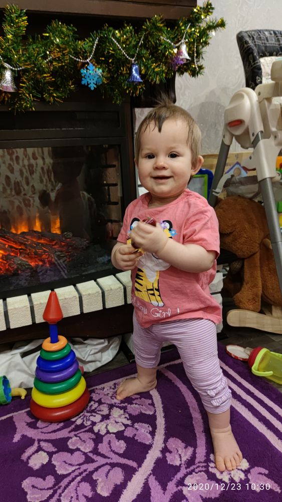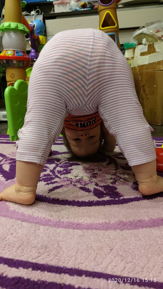 Злата: 4 зуба (2 верх, 2 низ), ходит вдоль опоры, стоит без опоры, встает с пола на ноги и стоит, научилась скатываться с горки, на горку залезает сама ползком, часто смотрит на все стоя попой вверх. Любит сладенькое, грызет то что найдет (то грушу отняла у старшего, то он печенькой ее угостил). Очень любит сидеть у меня на руках ну и вообще мать должна быть всегда в зоне досягаемости иначе атака ор+слезы+сопли. Говорит что она папина дочка (я:злата мамина красавица, она: папа. И никак ее не уговорить. ) В мое отсутствие спокойный идеальный ребенок. Любит прятаться ку-ку, любит ладушки и танцует под музыку.