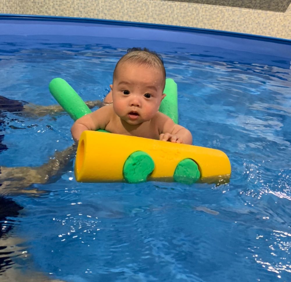 этот месяц детки прозанимались в бассейне, все пока так же, как и было в начале, не в восторге, но и не сопротивляются))) дочка освоила переворот на живот на прошлой неделе, и теперь ее не остановить 😂 она переворачивается, потом устаёт, плачет, я переворачиваю ее обратно на спину, и она снова плачет, но теперь уже потому что ее перевернули. Полежит на спине пару минут и снова переворачивается на живот 🤦🏻♀️